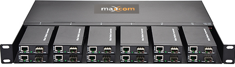 The Media Converter chassis is capable of housing up to 12 mini media converters. You can start with a single media converter, and grow to 12 Media Converters