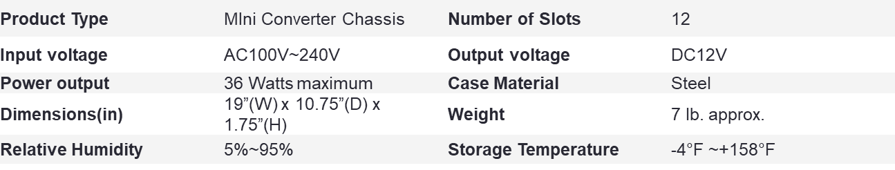 - 1U Rack Mount, 12 Slot, Mini Media Converter Chassis