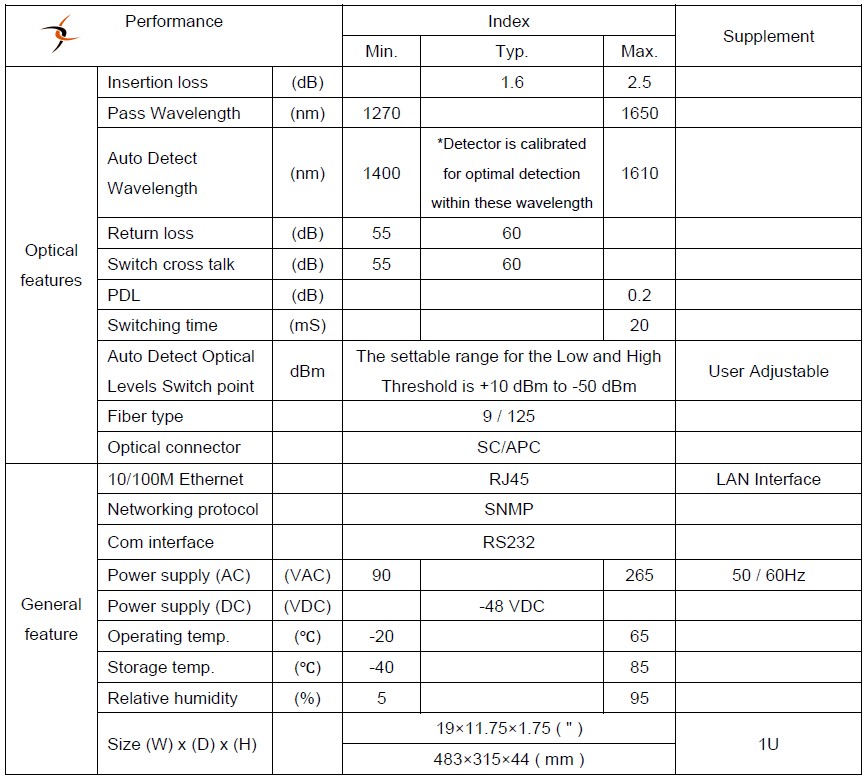 The MXOFSW-2X1 is a 2×1 auto detecting optical switch. It will support two optical fibers input and one fiber output with an auto detect switch function. The unit supports a wide operating wavelength range and a quick switching rate.